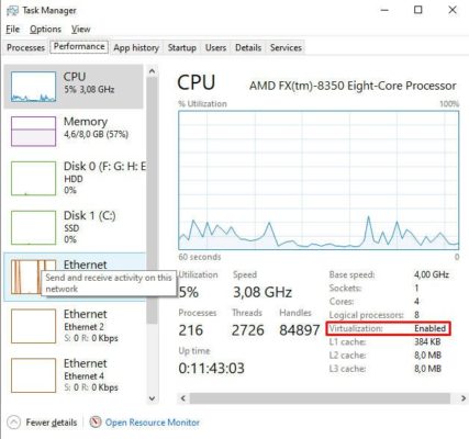 - Pastikan menu Virtualization Enable.