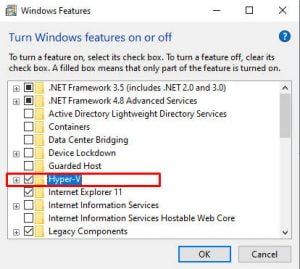 - Centang fitur Hyper-V.