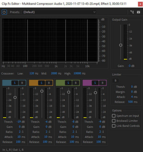 Lalu setelah rekaman selesai agar lebih bagus lagi kita bisa editing lagi di Software Premiere pro dan menambahkan Effect Multiband Compressor agar suara lebih jelas dan tidak menimbulkan over loud atau suara yang terlalu keras sehingga suara menjadi pecah.